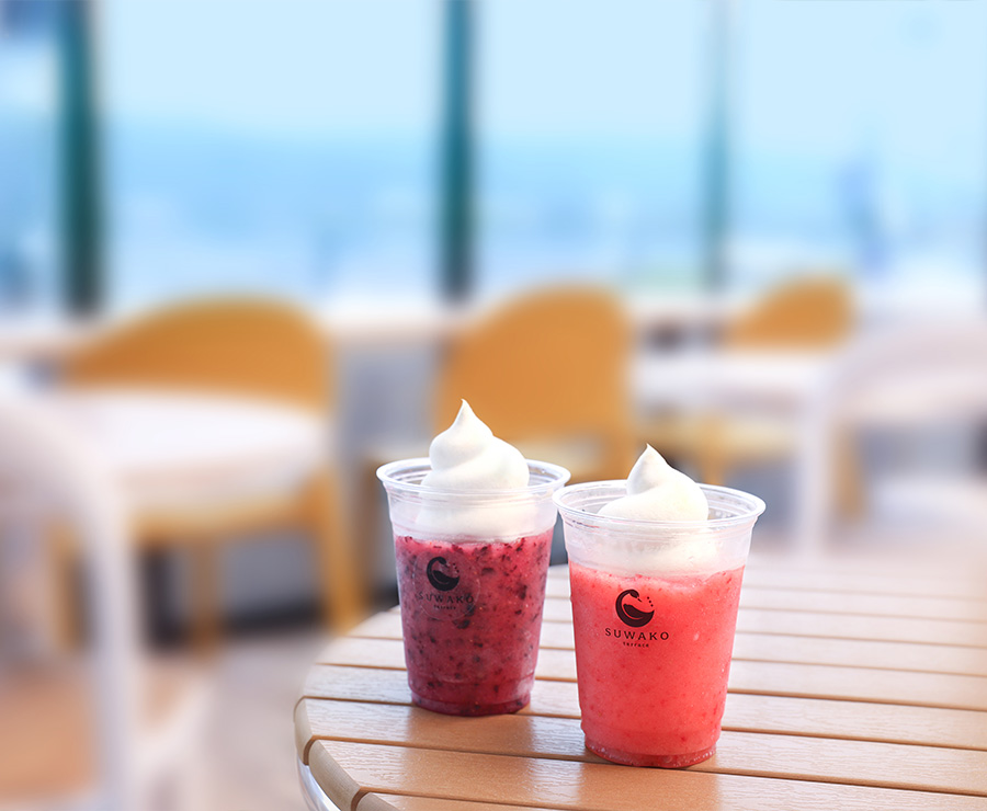 諏訪湖テラスオリジナルのコーヒーをはじめとするドリンクや、ソフトクリームなどの軽食は店内のカウンターでもご提供しています。