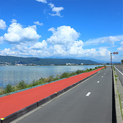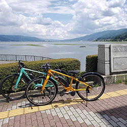 目の間に広がる諏訪湖には、湖畔をぐるりと一周できるサイクリングロードが整備されています。アップダウンのない湖畔のサイクリングは爽快そのもの。諏訪湖テラスではレンタサイクルをご用意し、お気軽にお楽しみいただけます。